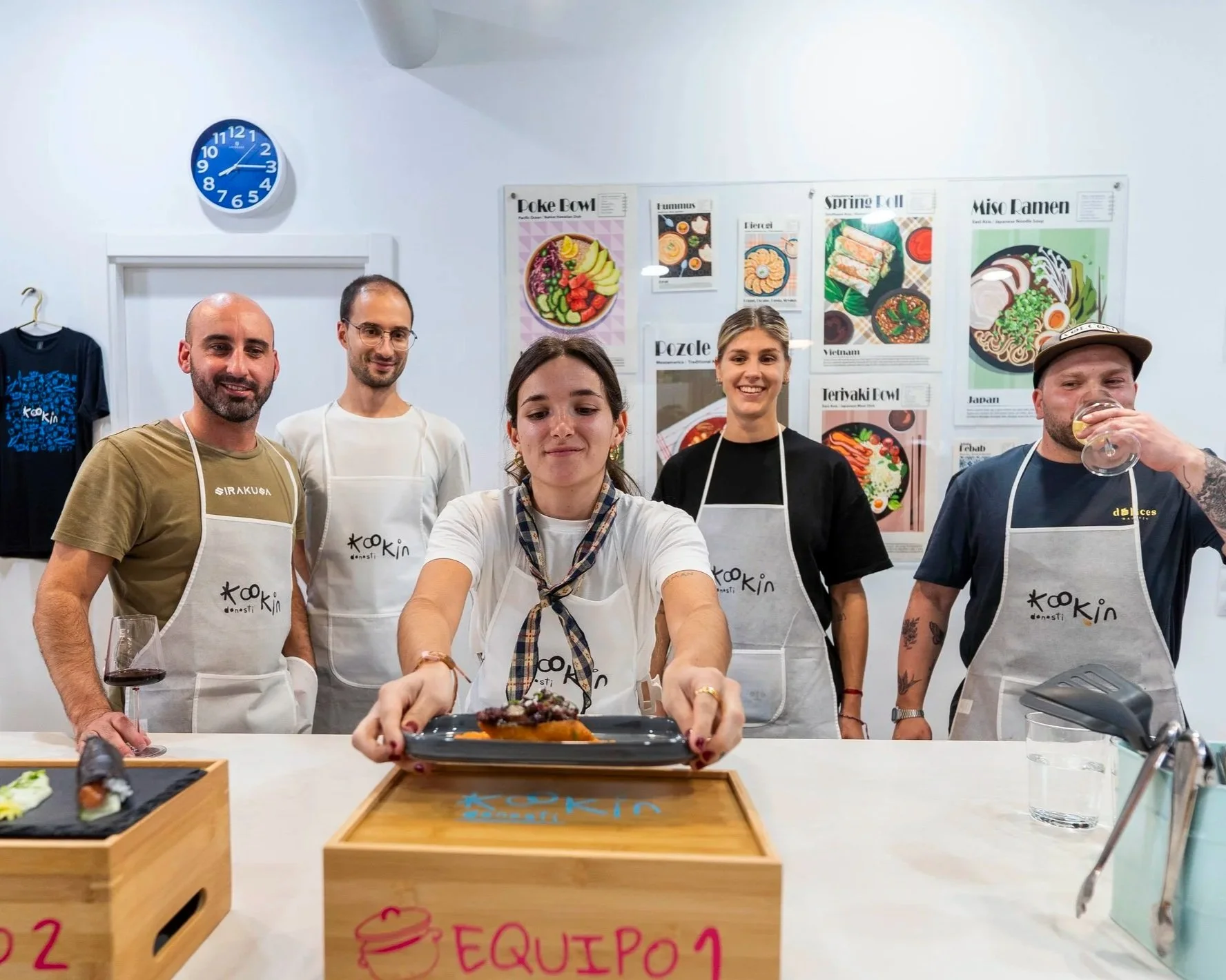 Cocinamos juntos en un ambiente distendido, nos reímos, aprendemos y terminamos disfrutando de la comida en buena compañía.