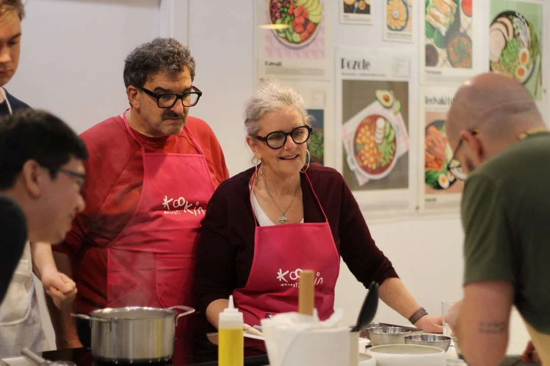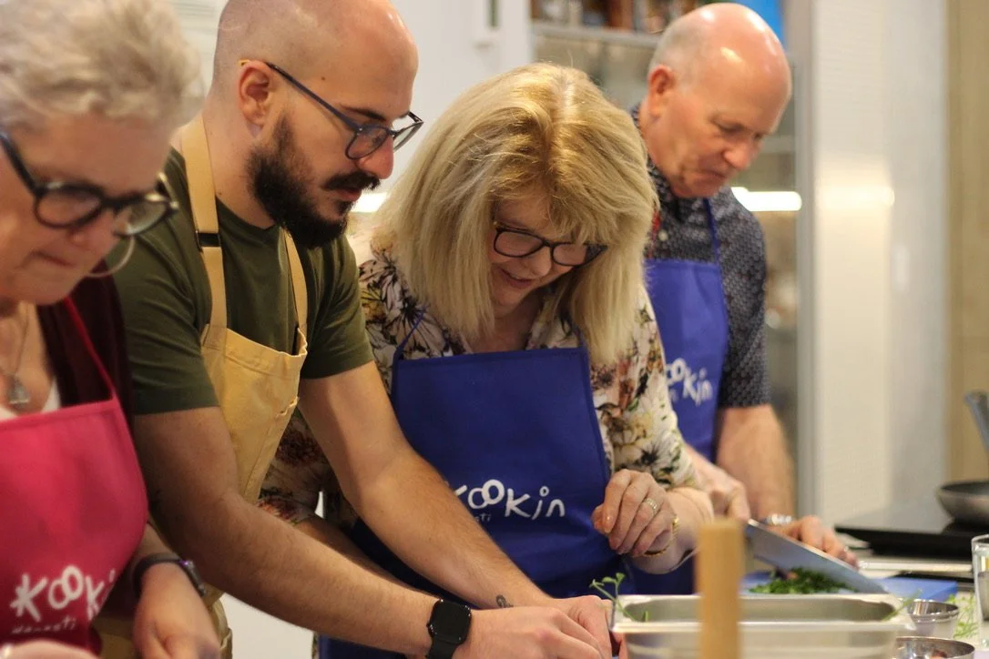 Then we walk to Kookin Donosti, roll up our sleeves, and prepare a full Basque menu together. This is a hands-on workshop from the first cut to the last bite, guided step-by-step so everyone can enjoy cooking, regardless of experience. You’re not watching a demonstration: you’re the chef.